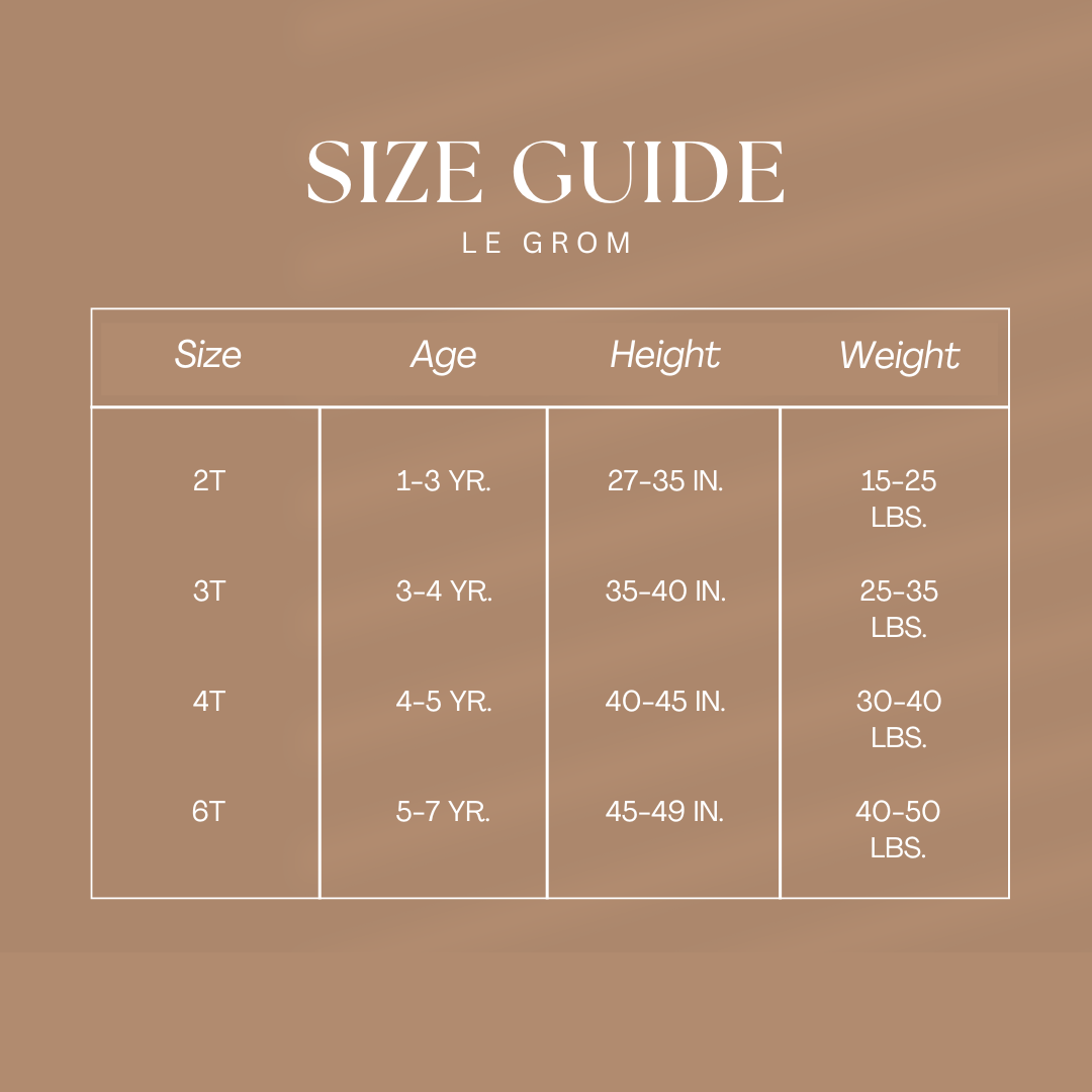 Use Le Grom's wetsuit size guide to find the ideal fit for toddlers and youth. Our detailed measurements ensure maximum comfort and performance, helping you select the right size for your child's surfing adventures. Shop confidently with accurate sizing information tailored to young surfers.